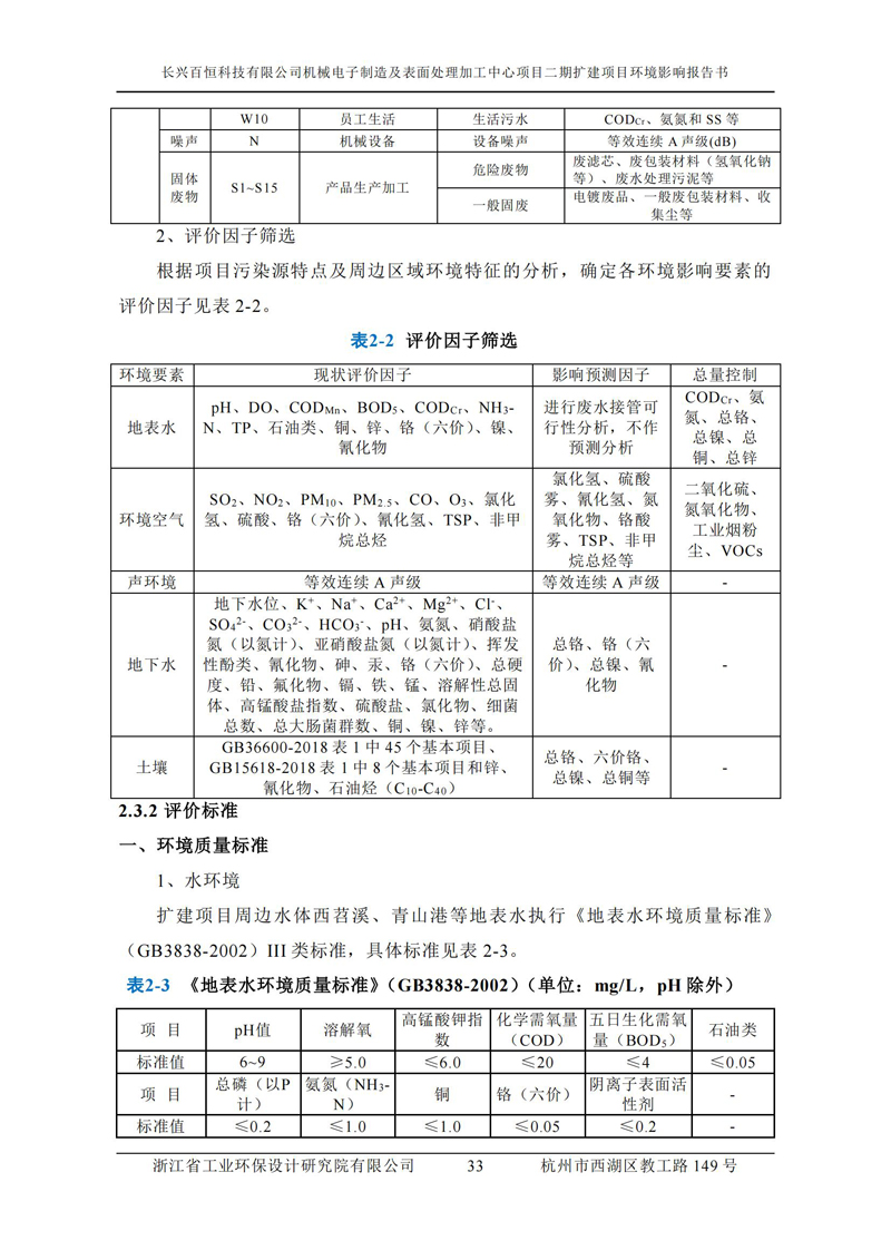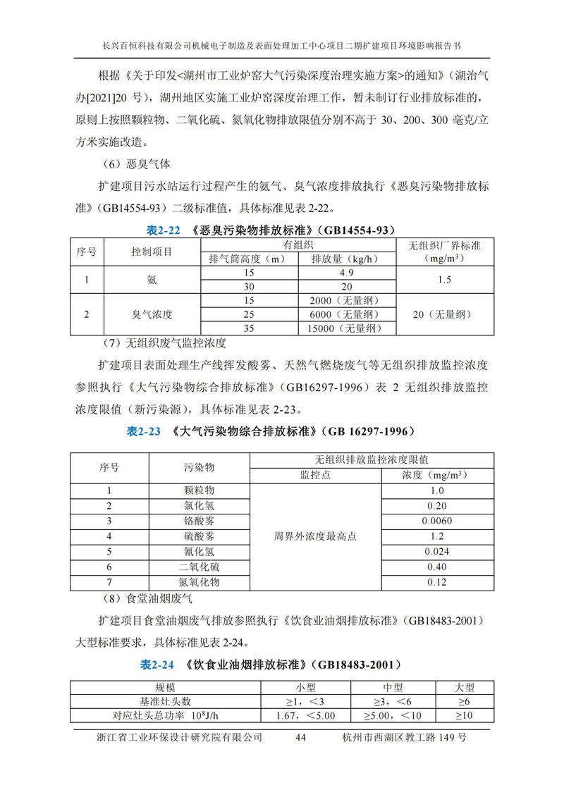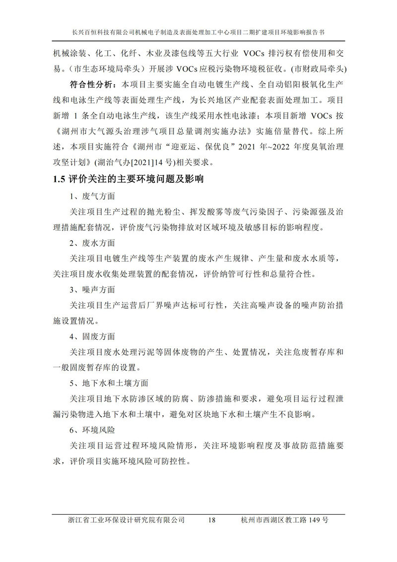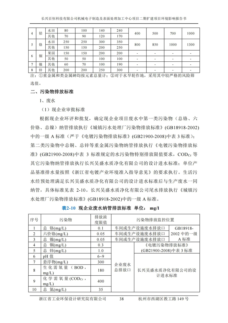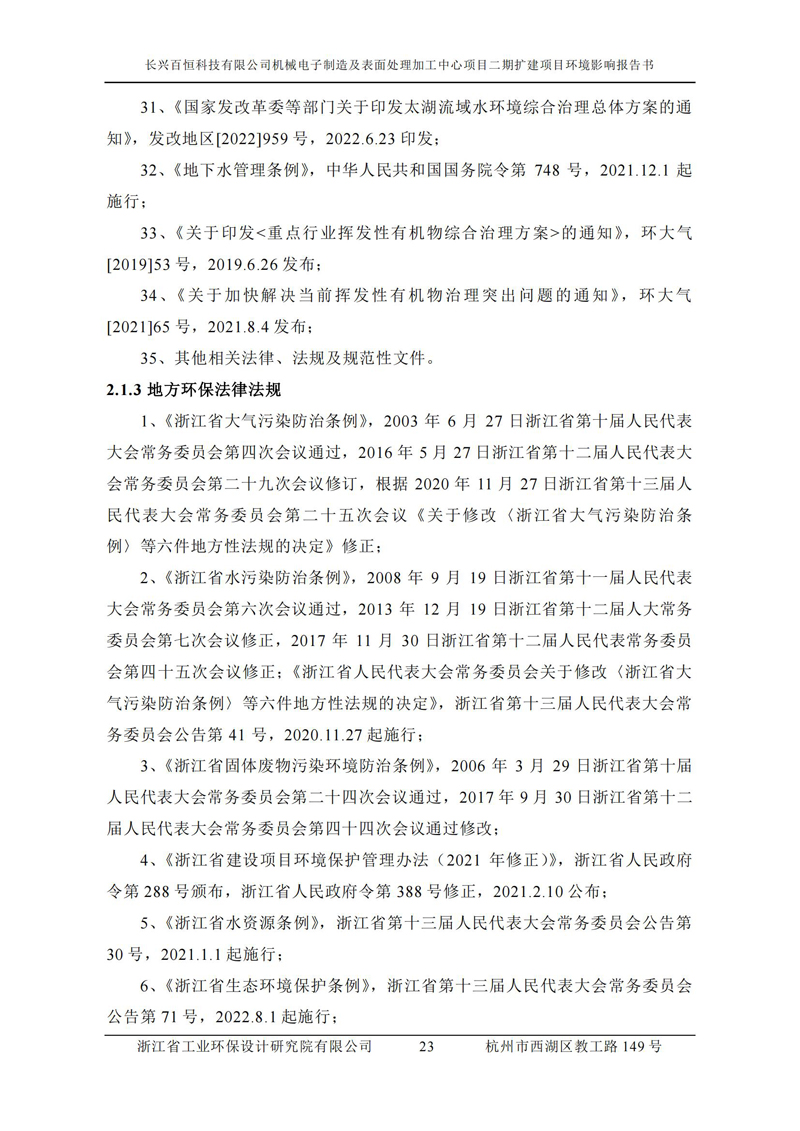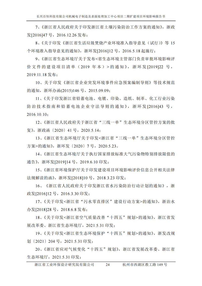 根據(jù)要求我公司對長興百恒科技有限公司二期擴(kuò)建項(xiàng)目環(huán)評報(bào)告書進(jìn)行全本公示發(fā)布日期:2022/9/26 類別:公司新聞 瀏覽量: 3175 根據(jù)《浙江省建設(shè)項(xiàng)目環(huán)境保護(hù)管理辦法(2018年修正)》及相關(guān)要求,我公司對長興百恒科技有限公司機(jī)械電子制造及表面處理加工中心項(xiàng)目二期擴(kuò)建項(xiàng)目環(huán)境影響報(bào)告書進(jìn)行全本公示
